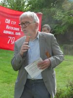 Wolfgang Müller, Vorsitzender des Vereins „„Deutsch-Russischen Friedenstage Bremen e.V.“ begrüßte zu Anfang alle Anwesenden, insbesondere die Delegation der Russischen Botschaft. Anschließend sprach Pastor i.R. Hartmut Drewes. Er beklagte in Deutschland die Verdrängung und Unterschlagung der Tatsache, dass die Sowjetunion die größten Opfer für die Befreiung Deutschlands und die Beendigung des Zweiten Weltkriegs gebracht habe. Stattdessen führe die Bundeswehr im Rahmen der NATO große Manöver bis an die Grenzen Russlands durch. Andererseits gab Drewes seiner Freude darüber zum Ausdruck, dass die Veranstaltungen der Deutsch-Russischen Friedenstage seit ihrem Bestehen großes Interesse und starke Beteiligung zu verzeichnen hätten. Das mache deutlich, dass viele Menschen in unserem Land für ein friedliches Miteinander mit dem russischen Volk seien. Jürgen Borchert trug sein Gedicht „Memorandum für alle Deutschen die für Krieg werben und für solche die sich werben lassen“ vor. Zum Schluss gab Irene Baumann in Deutsch und Russisch zu bedenken, dass durch die Opfer der Sowjetunion die russische Kultur und die russische Sprache erhalten geblieben sind. Es nahmen am Gedenken auch Personen anderer Nationen teil. Man sieht es an den Flaggen von Venezuela und Kuba. Für russische Musik sorgte durch Gesang mit Gitarrenbegleitung Vladimir Papadopoulos, und er wurde von mehreren Anwesenden gesanglich unterstützt. Der Gedenkstunde schlossen sich noch viele Gespräche an.